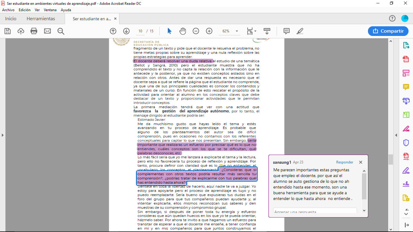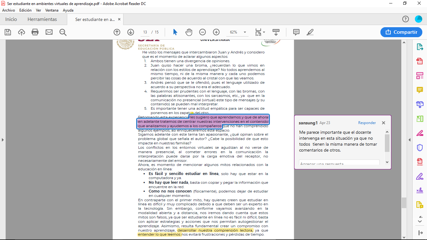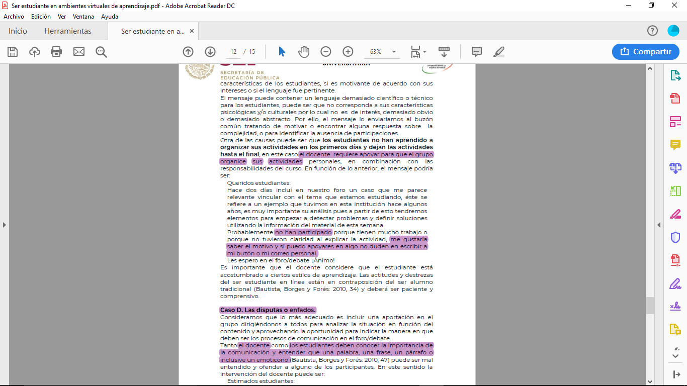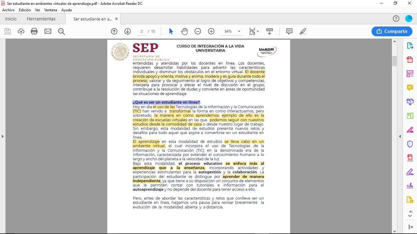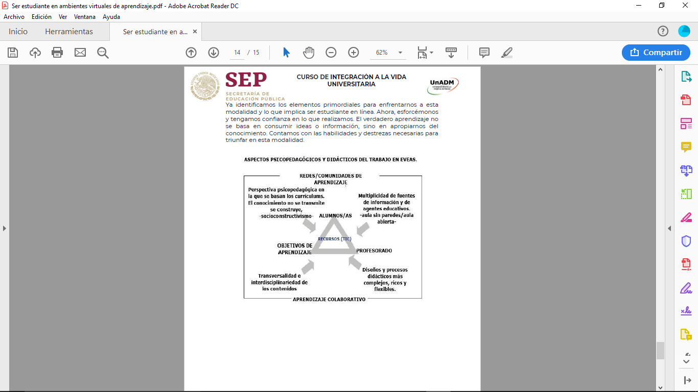 Ya que les explique lo que es ser un estudiante en línea, recordemos que el estudiante también tiene dificultades para adaptarse en esta nueva modalidad de aprendizaje, ya sea académicamente es decir está acostumbrado a estudiar de manera presencial a que sea dirigido por un docente, a memorizar conceptos sin antes entenderlos, a estar compitiendo con sus compañeros por ver quién es mejor, a depender de un horario fijo, y principalmente a no comprender las diferentes fuentes de información que se maneja en Internet ya que es demasiada; el alumno debe de tener una buena actitud ante todos estos retos que se le presentan y trazarse metas para lograrlas y emocionalmente que principalmente se basan en saber manejar nuestras emociones ante nuestros compañeros ya que en esta modalidad de estudio tenemos a compañeros de otros estados y cada quien tiene sus costumbres y formas de relacionarse con otros el trato debe de ser de mutuo respeto entre compañeros y así mismo con el docente, y tratar de llevar una buena relación para que nuestro curso sea meramente profesional.