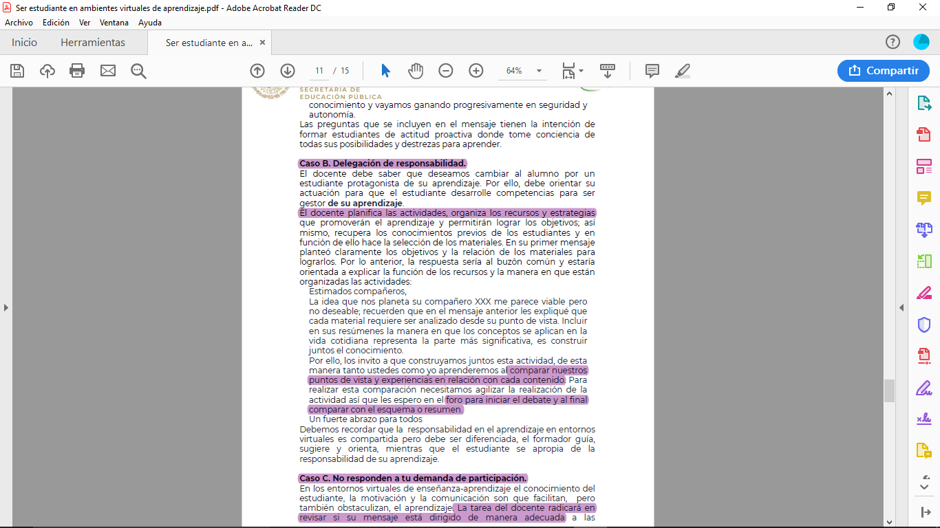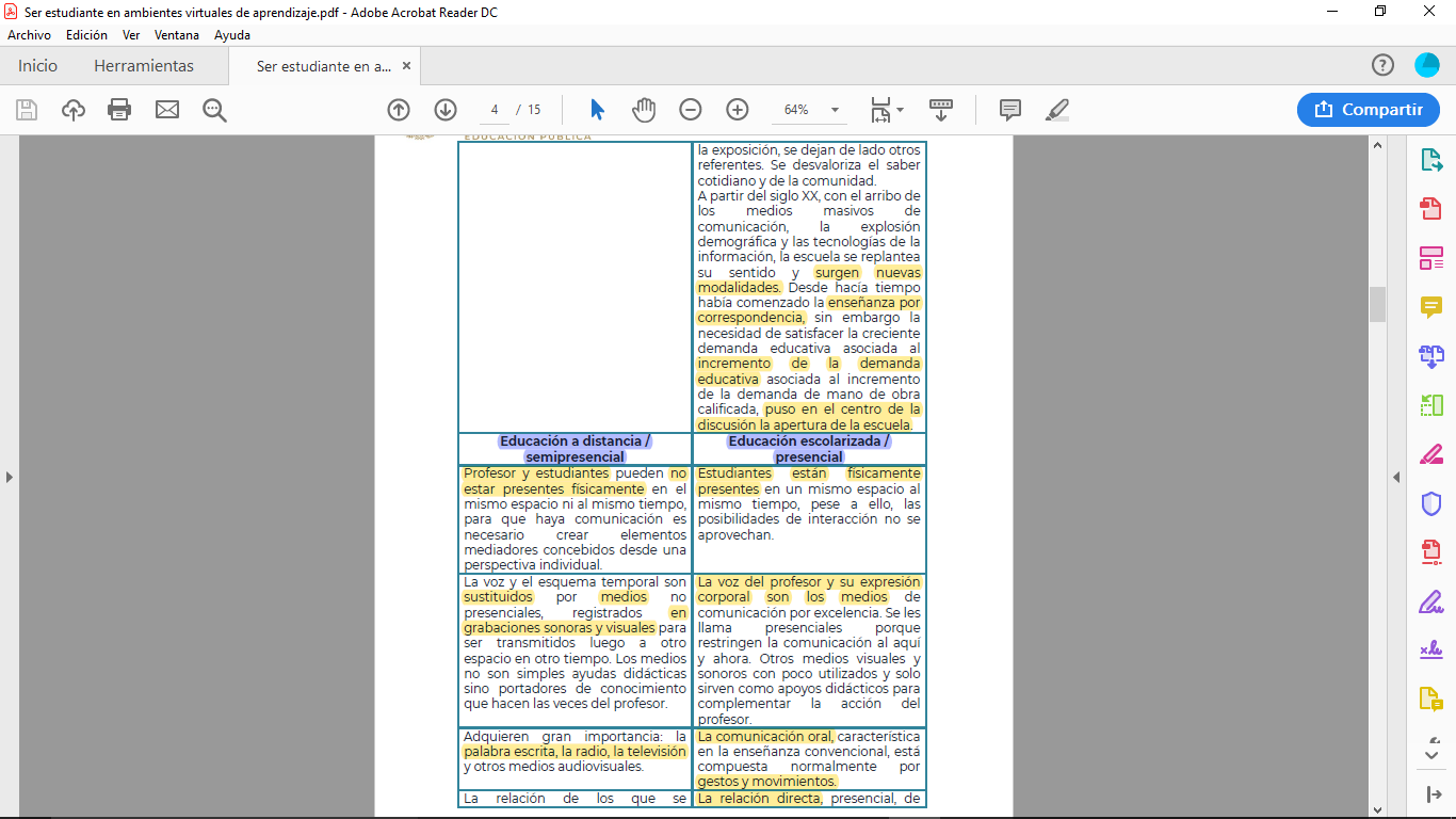 En esta modalidad la prioridad es que el alumno lea y analicé la información que se le está proporcionando, que tenga una buena actitud para trabajar en entornos colaborativos y que tenga metas.