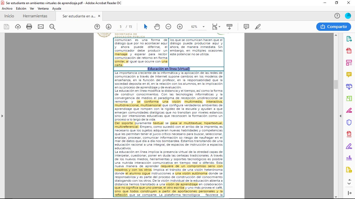 Para mi ser un estudiante en línea es prácticamente la forma de estudiar en un ambiente meramente virtual en el que se incorporan el uso de las Tecnologías de la Información y la Comunicación (TIC), se centra en un aprendizaje autónomo, en la que el alumno es el que se hace responsable de la manera en la que quiere aprender y en cómo manejar sus tiempos, que busca más información acerca de lo que no entiende y al mismo tiempo tiene al docente para que le ayude en el proceso de su aprendizaje a responder dudas y orientar al alumno, no está presencialmente pero en esta modalidad la manera en que se comunican es a través de foros o por su buzón personal (mensajes).